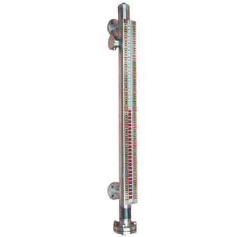 磁性翻柱式液位計是根據(jù)液體對浮子產(chǎn)生浮力及磁性耦合的原理設計和工作的。當被測容器中的液位發(fā)生變化時,液位計主導管中的浮子產(chǎn)生升降,浮子中的長久磁體驅(qū)動紅、白磁翻柱產(chǎn)生180°翻轉(zhuǎn)來指示液位,對應于紅、白磁翻柱界位處就是實測液位。