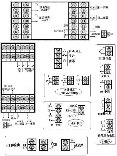 SCR--可控硅過零觸發(fā)脈沖輸出,SSR--固態(tài)繼電器控制輸出,SOT--雙向可控硅輸出